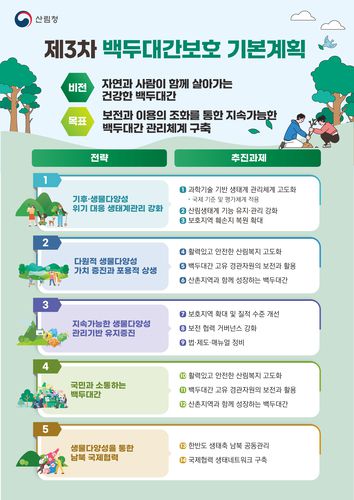 산림청은 제3차 백두대간보호 기본계획 이행을 위해 기후에너지환경부 등 관계부처 및 백두대간보호지역 6개도(32개 시·군)와 유기적으로 협력하고, 매년 백두대간보호 시행계획을 수립하는 등 정책 운영에 만전을 기할 방침이다.
