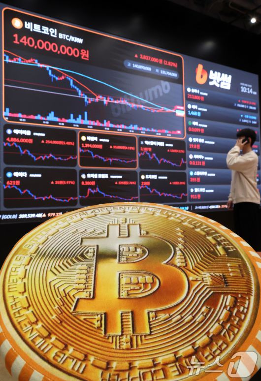 (서울=뉴스1) 이광호 기자 = 비트코인 가격이 9만5000달러선을 회복한 14일 오전 서울 서초구 빗썸라운지 강남본점 전광판에 비트코인 등 가상화폐 거래 가격이 표시되고 있다. 글로벌 가상자산 시황 중계 사이트 코인마켓캡에 따르면 이날 오전 10시 34분 기준 비트코인은 24시간 전보다 4.66% 오른 9만5398달러에 거래되고 있다. 비트코인이 9만5000달러를 넘어선 것은 지난해 11월 이후 처음이다. 2026.1.14/뉴스1