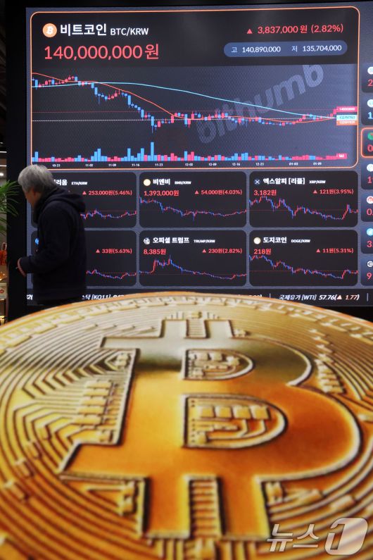 (서울=뉴스1) 이광호 기자 = 비트코인 가격이 9만5000달러선을 회복한 14일 오전 서울 서초구 빗썸라운지 강남본점 전광판에 비트코인 등 가상화폐 거래 가격이 표시되고 있다. 글로벌 가상자산 시황 중계 사이트 코인마켓캡에 따르면 이날 오전 10시 34분 기준 비트코인은 24시간 전보다 4.66% 오른 9만5398달러에 거래되고 있다. 비트코인이 9만5000달러를 넘어선 것은 지난해 11월 이후 처음이다. 2026.1.14/뉴스1
