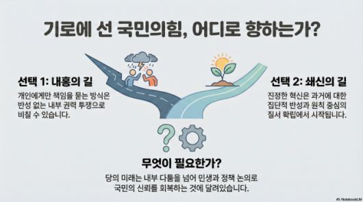 지금 국민의힘에 필요한 것은 보다 넓은 성찰이다. 책임을 개인에게만 귀속시키는 방식으로는 정당의 위기를 넘을 수 없다. 위기 앞에서 스스로를 해체하듯 몰아붙이는 선택이 국민에게 어떤 메시지를 주는지도 돌아봐야 한다.