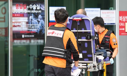 대구 소방 구급대원이 환자를 이송하고 있다. 대구=연합뉴스 |