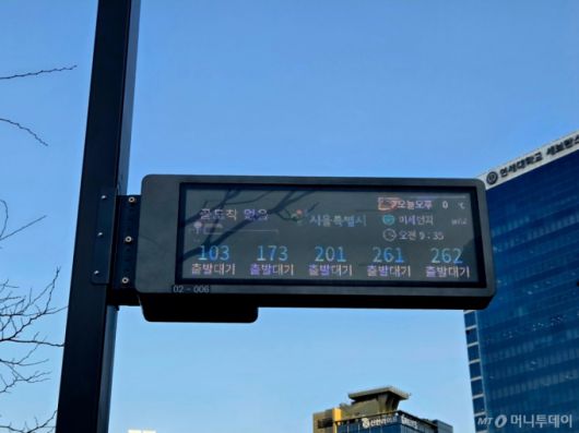 14일 오전 서울 중구 서울역 종합환승센터 버스 정류장에 비치된 전광판. 다수의 버스가 '출발대기' 상태로 표시돼 있다./사진=김서현 기자. |