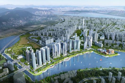 인천경제자유구역 송도가 수변 도시로 탈바꿈될 랜드마크의 윤곽이 드러나고 있다. 인천시는 송도 워터프런트 1-2단계 공사가 전방위로 추진되며 연내 물길이 가시화될 것이라고 14일 밝혔다.