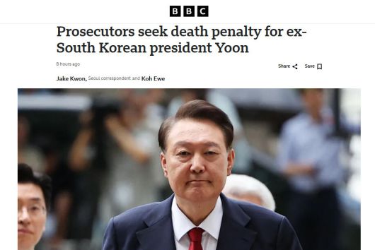13일 내란 우두머리 혐의를 받는 윤석열 전 대통령에게 조은석 특별검사팀이 법정 최고형인 사형을 구형하자, 전 세계 주요 언론들도 이를 긴급 보도했다.
