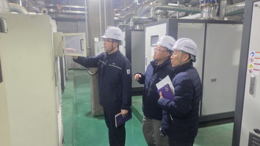송산하수처리장 송풍기 작동 시설을 점검하고 있다. 사진=인천환경공단 |