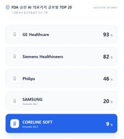 [라포르시안] 의료 인공지능(AI)기업 코어라인소프트(대표 김진국)는 미국 FDA 승인 AI 기반 의료기기 수 기준 글로벌 톱(TOP) 20 기업에 이름을 올렸다고 14일 밝혔다.