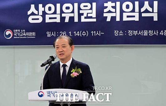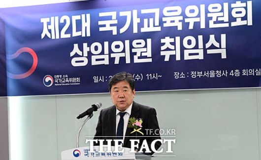 [더팩트ㅣ임영무 기자] 이광호, 김경회 국가교육위원회 상임위원이 14일 오전 서울 종로구 정부서울청사에서 열린 취임식에 참석해 기념촬영을 하고 있다.