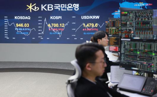 14일 KB국민은행 딜링룸 전광판에 코스피 지수가 4700을 돌파하고 있다. (사진=국민은행 제공) *재판매 및 DB 금지 |
