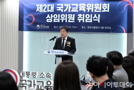 아시아투데이 박성일 기자 = 이광호 국가교육위원회 상임위원이 13일 오전 서울 종로구 정부서울청사에서 열린 제2대 국가교육위원회 상임위원 취임식에서 취임사를 하고 있다. ⓒ "젊은 파워, 모바일 넘버원 아시아투데이"