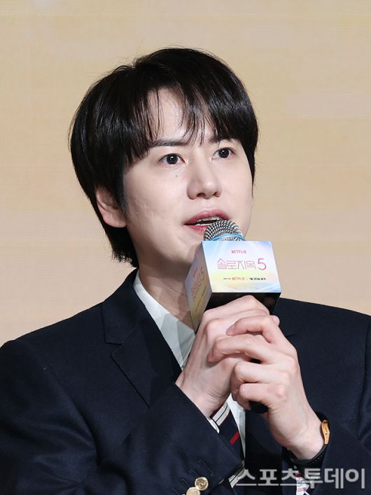 [스포츠투데이 권광일 기자] 가수 규현이 14일 서울 마포구 호텔 나루 서울 엠갤러리에서 열린 넷플릭스 예능 시즌5 제작발표회에 참석해 인사말을 전하고 있다. 2026.01.14. [스포츠투데이 권광일 기자 ent@stoo.com]