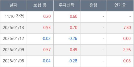 [표] 주요 기관별 순매매량 (단위 만주)