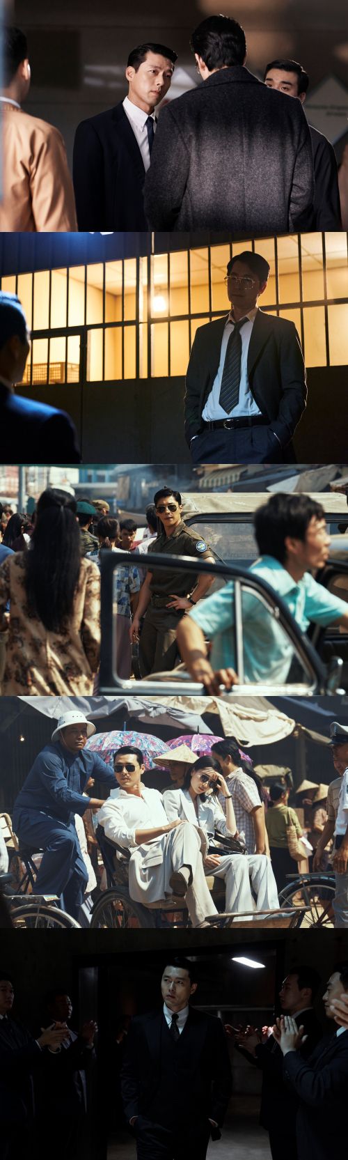 또한, 이국적인 풍경 속 ‘백기현’(우도환)은 월남으로 떠나기로 결심한 그가 과연 어떤 행보를 보일지 가늠할 수 없게 하는 동시에 ‘백기태’와 ‘이케다 유지’(원지안)의 모습 역시 두 인물의 위험한 비즈니스의 향방에 대해 주목하게 한다. 마지막으로, 중앙정보부 요원들의 중심에서 카리스마를 뿜어내는 ‘백기태’의 스틸은 그의 욕망이 어디까지 뻗어 나갈 것인지 궁금하게 만든다.