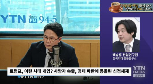 ◇조태현: 알겠습니다. 미국이 베네수엘라 그리고 이란에서 보여주는 모습들, 그 뒤에는 여러 가지 의도가 있겠지만 역시 중국을 빼놓을 수가 없는 것 같습니다. 지금까지 백승훈 한국외대 중동연구소 전임연구원과 함께 이란 사태에 대해서 점검해 봤습니다. 오늘 말씀 잘 들었습니다.