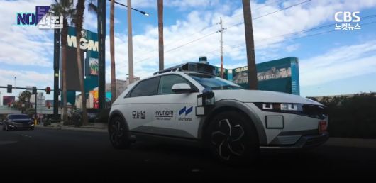 현대차 모셔널 로보택시가 2026 CES가 열린 라스베이거스 시내를 주행하는 모습. 'CBS노컷뉴스' 유튜브 캡처 |