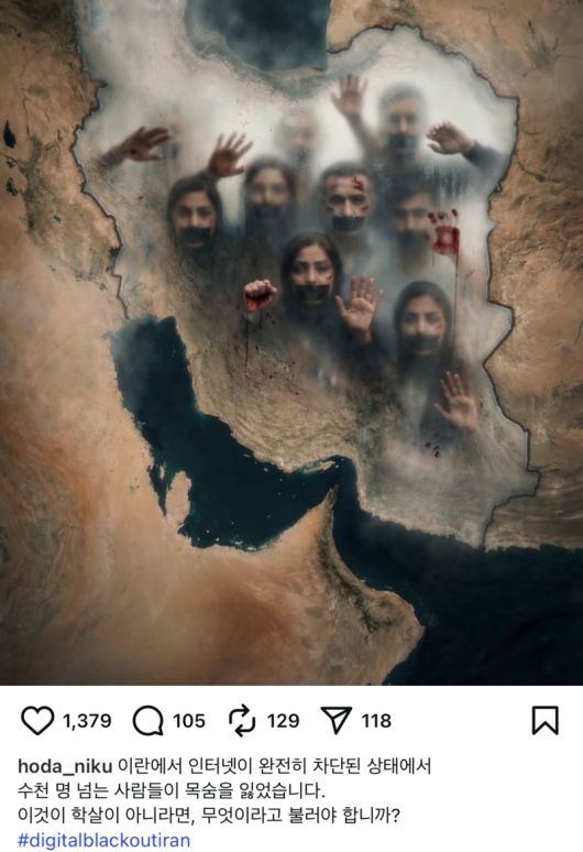 그는 '디지털 블랙아웃(DigitalBlackoutIran)' 해시태그를 달며 "친구들이 죽었는지 살아있는지조차 모른다"고 전해, 디지털 검열과 통신 차단으로 인한 상황의 심각성을 알렸습니다.