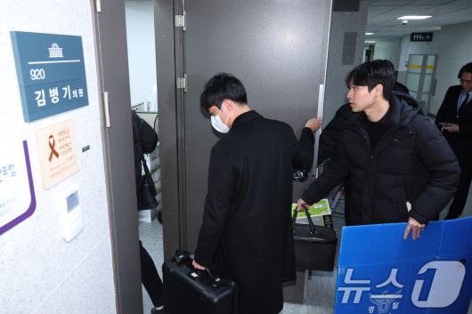 서울경찰청 광역수사단 공공범죄수사대가 14일 서울 여의도 국회 소통관 김병기 의원실 압수수색에 돌입하고 있다. 2026.1.14/뉴스1 ⓒ News1 신웅수 기자 |