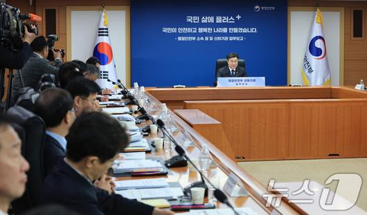 (서울=뉴스1) 임세영 기자 = 윤호중 행정안전부 장관이 14일 오전 서울 종로구 정부서울청사에서 열린 행안부 산하기관 업무보고에서 모두발언을 하고 있다. 2026.1.14/뉴스1seiyu@news1.krCopyright ⓒ 뉴스1. All rights reserved. 무단 전재 및 재배포, AI학습 이용 금지.