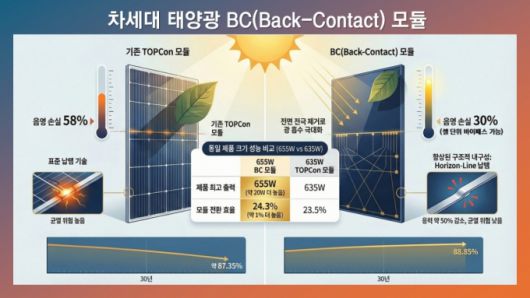 실제 발전소 운영 환경을 고려한 내구성과 안정성도 대폭 강화됐다. 에스에너지는 기존 모듈이 음영 발생 시 전체 발전이 중단되던 한계를 극복하기 위해 각 셀이 독립적으로 작동하는 진보된 회로 설계를 적용했다. 이를 통해 음영 조건에서의 출력 손실률을 일반 모듈(58%) 대비 절반 수준인 30%로 낮춰 실질적인 발전 수익을 보전한다.