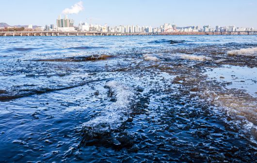 한낮에도 영하권 추위가 이어진 지난 13일 서울 영등포구 여의도 인근 한강이 얼어있다. /뉴스1 |