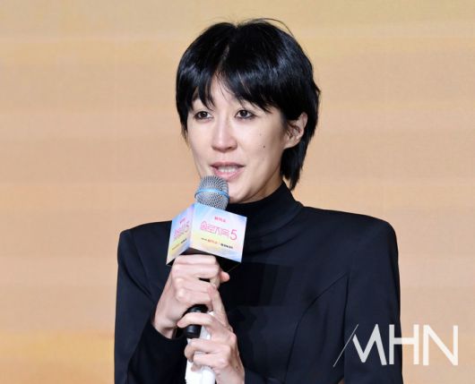 (MHN 이지숙 기자) 방송인 홍진경이 14일 오전 서울 마포구 호텔 나루 서울 엠갤러리에서 열린 넷플릭스 예능 '솔로지옥' 시즌5 제작발표회에 참석해 인사말을 하고 있다.