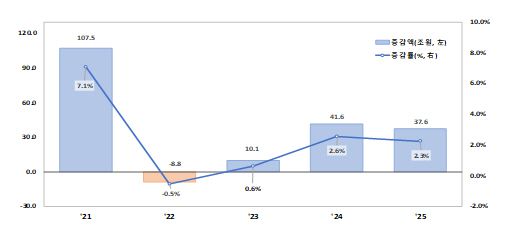 신용대출은 2023년 -14조5000억원, 2024년 -6조원으로 꾸준히 마이너스를 기록했다. 생활비 목적의 대출과 국내외 주식투자로인한 대출이 늘었다는 분석이다.