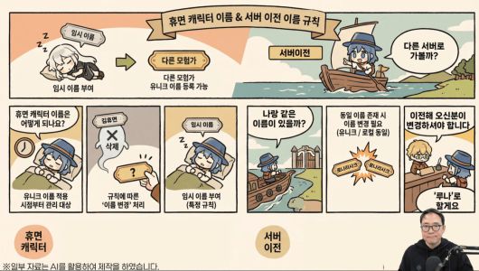 '유니크 닉네임'은 다른 서버에서 사용 중인 중복 닉네임을 전환할 수 없는 절대 규칙을 바탕으로 운영된다. 도입 시점부터 장기 미접속 캐릭터는 휴면 캐릭터로 전환 후 관리 대상이 돼 '임시 이름'이 부여되며, 다른 모험가가 해당 이름을 '유니크 닉네임'으로 선점해 사용할 수 있도록 개방된다.
