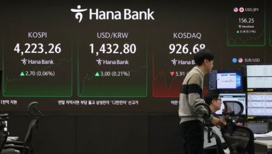서울 중구 하나은행 본점 딜링룸 현황판에 코스피, 원 ·달러 환율이 표시돼 있다. |