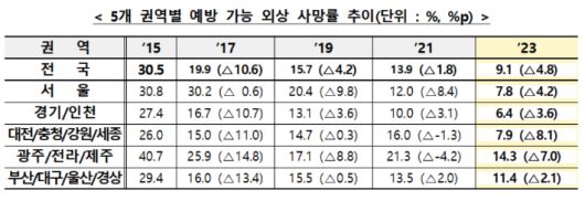 2015년 30.5%였던 예방 가능한 외상 사망률은 2017년 19.9%, 2019년 15.7%, 2021년 13.9%로 꾸준히 감소했다.
