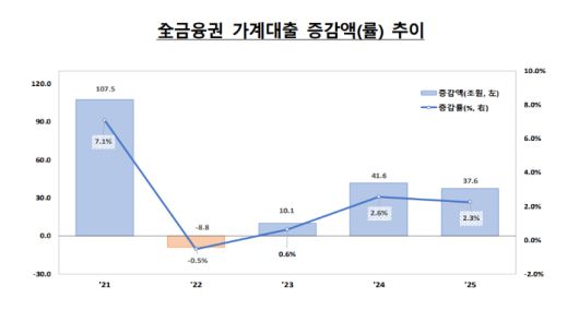 제2금융권 가계대출은 여전사, 보험, 저축은행 각각 3조원, 1조8천억원, 8천억원 감소한 반면 상호금융권과 새마을금고가 각각 10조5천억원, 5조3천억원 증가했다.