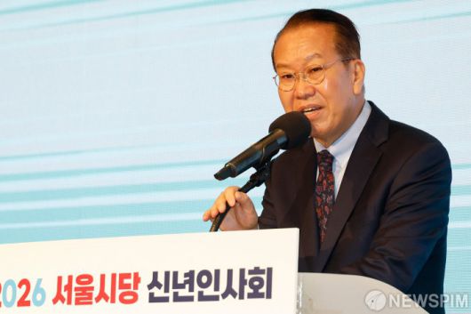 [서울=뉴스핌] 류기찬 기자 = 권영세 국민의힘 의원이 14일 오전 서울 여의도 중소기업중앙회 KBIZ홀에서 열린 2026 국민의힘 서울시당 신년인사회에서 신년사를 하고 있다. 2026.01.14 ryuchan0925@newspim.com