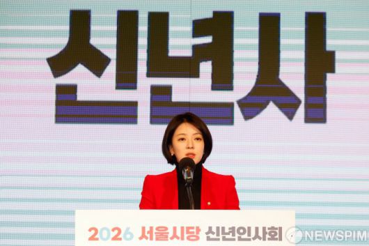 [서울=뉴스핌] 류기찬 기자 = 배현진 국민의힘 서울특별시당 위원장이 14일 오전 서울 여의도 중소기업중앙회 KBIZ홀에서 열린 2026 국민의힘 서울시당 신년인사회에서 신년사를 하고 있다. 2026.01.14 ryuchan0925@newspim.com |