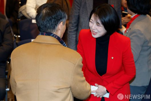 [서울=뉴스핌] 류기찬 기자 = 배현진 국민의힘 서울특별시당 위원장이 14일 오전 서울 여의도 중소기업중앙회 KBIZ홀에서 열린 2026 국민의힘 서울시당 신년인사회에 참석하고 있다. 2026.01.14 ryuchan0925@newspim.com
