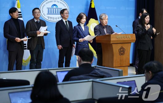 (서울=뉴스1) 김도우 기자 = 박은정 조국혁신당 의원과 국무총리실 검찰개혁추진단 자문위원회 위원이 14일 서울 여의도 국회 소통관에서 추진단이 입법 예고한 중대범죄수사청(중수청)법과 공소청법을 비판하며 위원직 사퇴 기자회견을 하고 있다. 2026.1.14/뉴스1