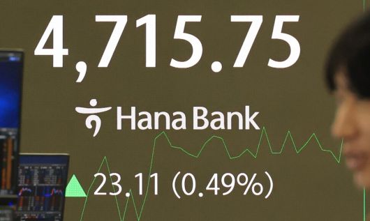 14일 서울 중구 하나은행 본점 딜링룸에서 직원이 증시와 환율을 모니터하고 있다. 연합뉴스 |