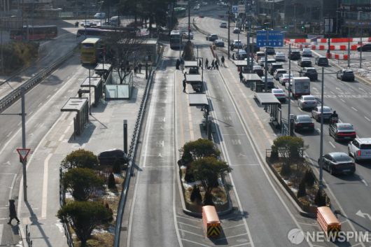 [서울=뉴스핌] 정일구 기자 = 서울 시내버스 파업이 이틀째 이어진 14일 오전 서울 중구 서울역버스종합환승센터 중앙버스전용차로가 한산한 모습을 보이고 있다. 2026.01.14 mironj19@newspim.com