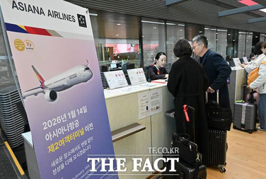 대한항공과 통합하는 아시아나항공은 14일 0시를 기준으로 제2여객터미널로 이전을 완료, 운항을 시작했다.