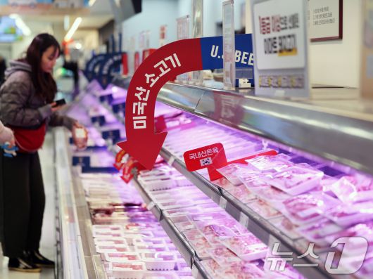 (서울=뉴스1) 황기선 기자 = 14일 서울시내 한 대형마트에 미국산 수입 소고기가 진열돼 있다. 이날 한국은행이 발표한 '2025년 12월 수출입물가지수 및 무역지수(잠정)'에 따르면, 지난달 수입물가지수(원화 기준 잠정치·2020년=100)는 143.20으로 전월(141.47) 대비 0.7% 상승했다. 전년 동월 대비로도 0.3% 올랐다. 수입물가가 전월 대비 기준으로 6개월 연속 상승한 것은 2021년 5~10월 이후 가장 긴 상승 기간이다. 2026.1.14/뉴스1