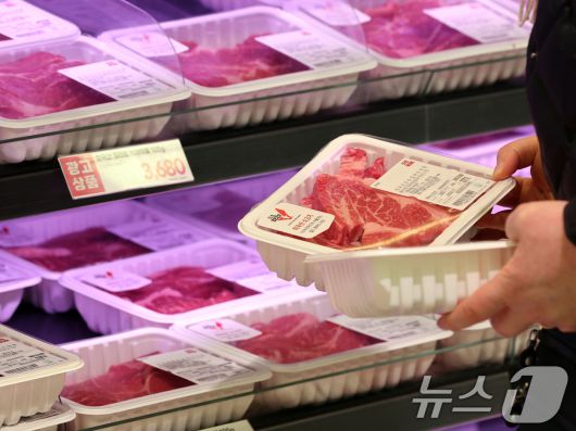 (서울=뉴스1) 황기선 기자 = 14일 서울시내 한 대형마트에서 고객이 미국산 수입 소고기를 고르고 있다. 이날 한국은행이 발표한 '2025년 12월 수출입물가지수 및 무역지수(잠정)'에 따르면, 지난달 수입물가지수(원화 기준 잠정치·2020년=100)는 143.20으로 전월(141.47) 대비 0.7% 상승했다. 전년 동월 대비로도 0.3% 올랐다. 수입물가가 전월 대비 기준으로 6개월 연속 상승한 것은 2021년 5~10월 이후 가장 긴 상승 기간이다. 2026.1.14/뉴스1