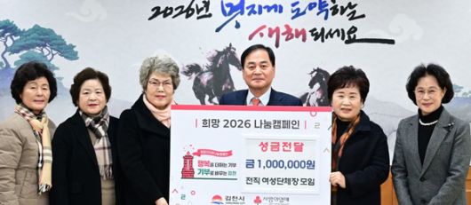 [김용구 기자] (김천=국제뉴스) 김용구 기자 = 김천시는 최근 전직 여성 단체장 모임(회장 이정숙)으로부터 희망2026나눔캠페인 성금 100만원을 전달받았다고 밝혔다.