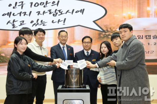 ▲해남군이 2026년 시무식때 인구10만 에너지자립도시 비전을 담은 타임캡술 봉인식을 가졌다.2026.1.2ⓒ해남군 |