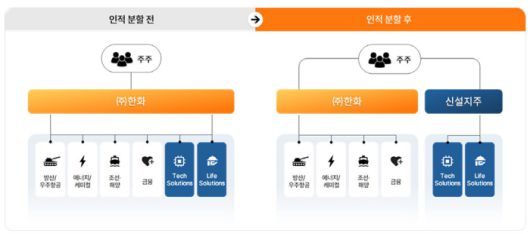 한화는 각 사업군의 특성과 환경에 적합한 경영전략을 수립하고, 신속한 의사결정이 가능한 사업체계를 구축해 기업 및 주주 가치를 제고하기 위해서, 방산, 조선·해양, 에너지, 금융 부문이 속하는 존속법인과 테크 및 라이프 부문이 포함된 신설법인으로 인적분할을 진행한다고 밝혔다.