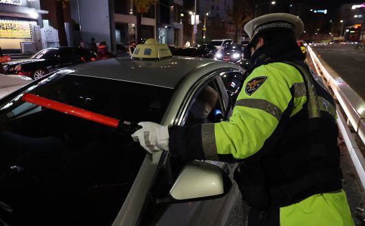 서울 관악경찰서 교통안전계 경찰이 관악구의 한 도로에서 연말연시 음주·약물운전 특별단속을 하고 있다. /뉴스1 |