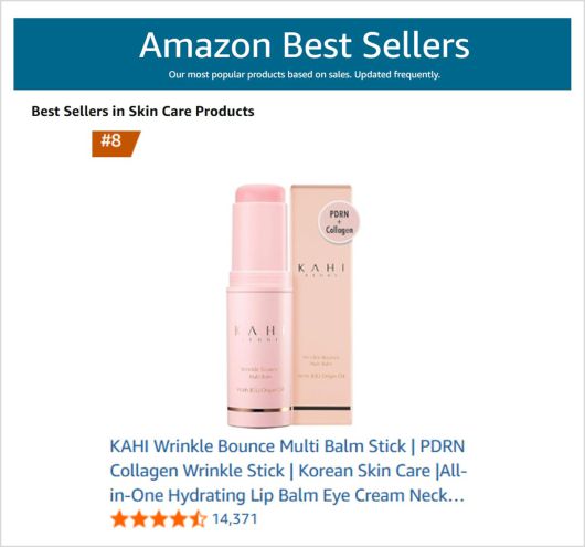 스킨케어 브랜드 가히(KAHI)의 대표 제품인 ‘링클 바운스 멀티밤 스틱’이 2026년 1월 3주 차 아마존 미국 사이트에서 스킨케어 카테고리 판매 순위 8위를 기록했다고 14일 밝혔다.
