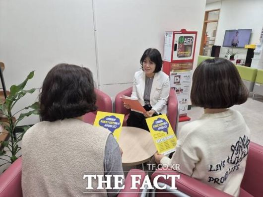유성구 치매안심센터직원이 치매 조기 검진에 대해 안내하고 있다. /대전시 유성구 |