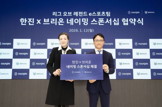 한진은 12일 서울 중구 사옥에서 조현민 한진 사장, 노삼석 한진 대표이사 사장, 임우택 브리온이스포츠 대표 등이 참석한 가운데 네이밍 스폰서십 협약식을 열었다. 이번 협약은 2일 발표한 파트너십을 공식화하고, 향후 3년간의 브랜드 마케팅과 비즈니스 협력 방향을 공유하기 위해 마련됐다.