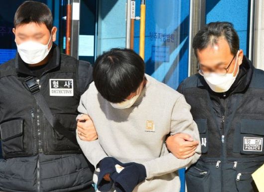 충북 괴산군에서 모친을 살해한 30대 남성이 4일 청주지법에서 구속전 피의자 심문(영장실질심사)을 받은 뒤 나오고 있는 모습. (사진=뉴시스) |