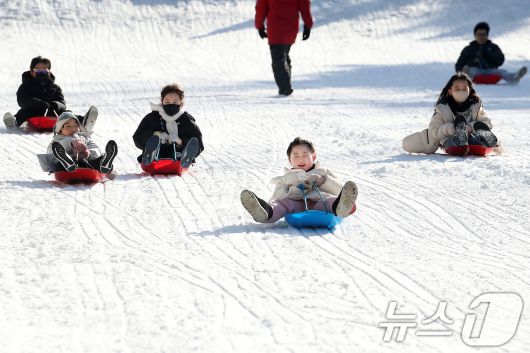 (대구=뉴스1) 공정식 기자 = 한파가 기승을 부린 14일 대구 달서구 테마파크 이월드를 찾은 어린이들이 눈썰매장에서 눈썰매를 타며 즐거운 시간을 보내고 있다. 2026.1.14/뉴스1jsgong@news1.krCopyright ⓒ 뉴스1. All rights reserved. 무단 전재 및 재배포, AI학습 이용 금지.