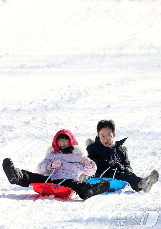 (대구=뉴스1) 공정식 기자 = 한파가 기승을 부린 14일 대구 달서구 테마파크 이월드를 찾은 어린이들이 눈썰매장에서 눈썰매를 타며 즐거운 시간을 보내고 있다. 2026.1.14/뉴스1jsgong@news1.krCopyright ⓒ 뉴스1. All rights reserved. 무단 전재 및 재배포, AI학습 이용 금지.