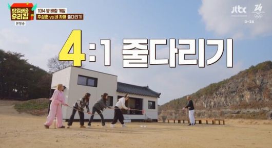 식사를 마친 이들은 손님 추성훈을 위해 방 배정 게임을 시작했다. 먼저 추성훈과 4대 1로 줄다리기를 하게 된 멤버들은 그를 이기기 위해 온갖 작전을 짜 승기를 잡는 듯했으나 추성훈의 능수능란한 파워 컨트롤에 결국 1승을 내주고 말았다.