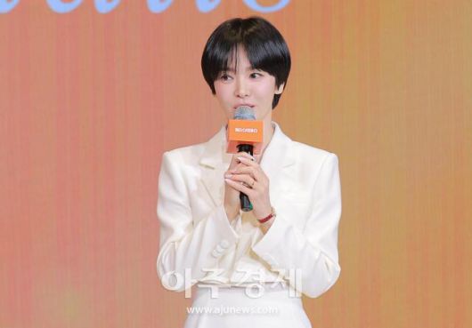 [사진=유대길 기자 dbeorlf123@ajunews.com] 배우 송혜교가 14일 오전 서울 강남구 웨스틴 서울 파르나스에서 열린 멀츠 에스테틱스의 히알루론산 필러 '벨로테로' 신규 캠페인 공개 행사에 참석해 인사말을 하고 있다. 2026.01.14 아주경제=유대길 기자 dbeorlf123@ajunews.com - Copyright ⓒ [아주경제 ajunews.com] 무단전재 배포금지 -